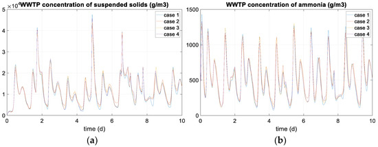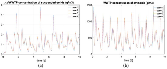 WWTP concentration of suspended solids (a) and ammonia (b).