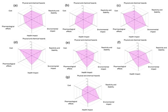 According to the data collected by PubChem [35,36,37], the data-score transformation of the collector green index data was performed using the qualitative and quantitative index calculation models discussed in the previous section, and the final score results are shown in Table 19. The collector green index data are shown in Table S11.