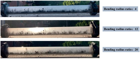 The flow characteristics of stiff shotcrete particles under different bending-diameter ratios.