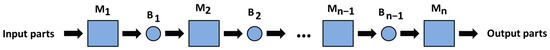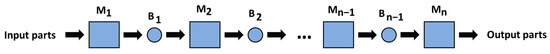 - The SPL comprises n machine tools (M1, M2, …., Mn) and n − 1 buffers (B1, B2, …., Bn−1). The machine tools are positioned sequentially, see Figure 1, with the corresponding buffers between each successive pair of machine tools.