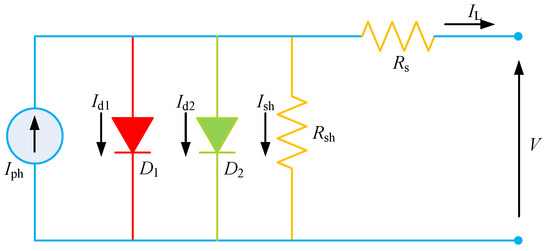 Compared to SDM, DDM has an additional diode in parallel, which has better accuracy in performance, but the model is also relatively more complex. The schematic diagram is shown in Figure 2 [24].