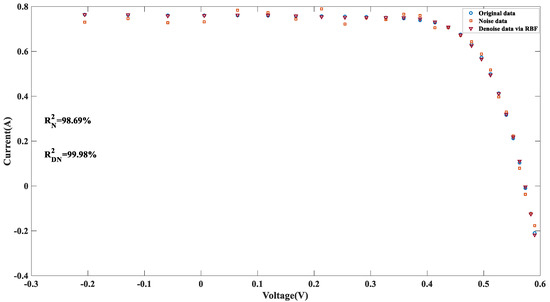 - Considering the impact of noise data on recognition accuracy, using RBF to de-noise and identify the parameters of the three diode models under two conditions, original data and de-noise data, respectively;