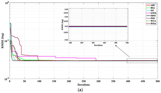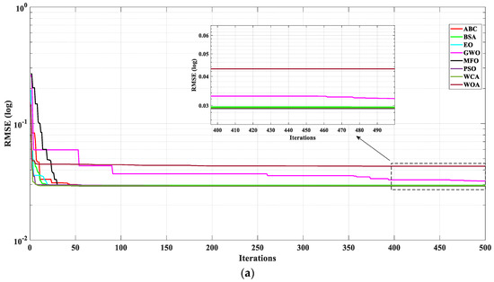 Table 8 shows the parameter extraction results of eight TDM algorithms under both low and high data conditions. All eight algorithms showed a decrease in RMSE, with the WOA algorithm having the largest decrease of 81.92%.