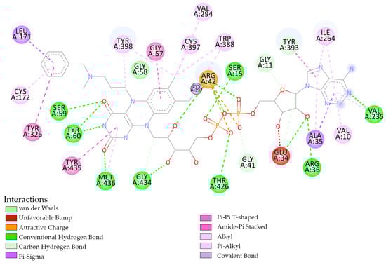 Experimental obtained interaction between flavin-adenine dinucleotide and MAO-B (PDB ID: 1GOS) [36].