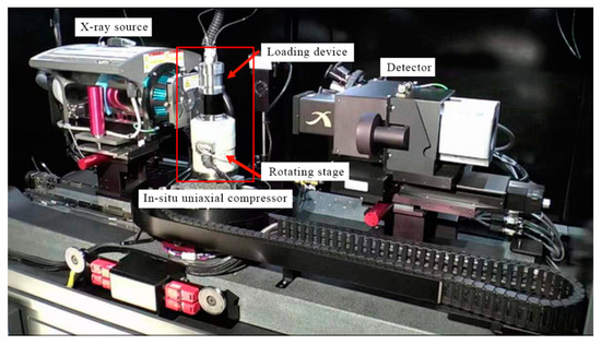 Experiments were conducted utilizing a uniaxial loading device with an integrated X-ray μ-CT system at the Institute of Geology and Geophysics, Chinese Academy of Science (Figure 2). This device can obtain high-precision CT scan images while compressing the coal sample in situ, avoiding the unloading effect.