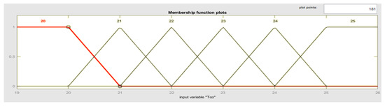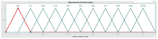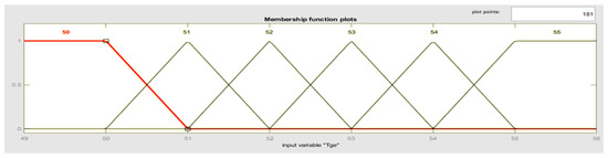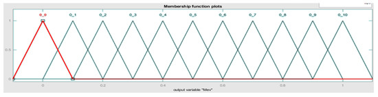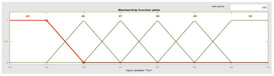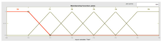 For the diffuse implication, the rule of the t-norm of the minimum was selected; for the aggregation, the rule of the s-norm of the maximum was chosen; and, for the diffusion, it was decided by the centroid method [45], which corresponds to physical phenomena that exhibit similarity with the absorption process.