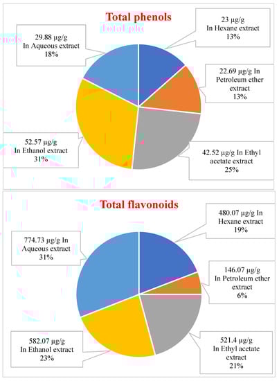 The total amount of plant phenols content (µg/g plant extract as Gallic acid equivalent) and plant flavonoid content (µg/g plant extract as Quercetin equivalent) of different extracts from Neem.