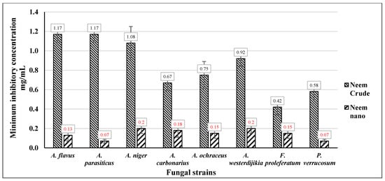 The MIC of Neem crude aqueous extract and Neem Ag-NPs against mycotoxigenic fungi.