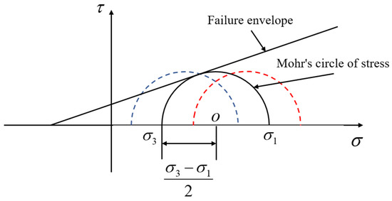 Wellbore instability in the drilling process occurs because the shear force on rocks at wellbores exceeds their shear strength, so the Mohr–Coulomb criterion is selected as the strength criterion of the model. The Mohr–Coulomb criterion reflects the relationship between shear stress and normal stress at failure of rocks and uses the maximum and minimum principal stresses to separately represent the normal stress and shear stress. Under the pore pressure in the formation, the Mohr–Coulomb criterion is rewritten as [28]: