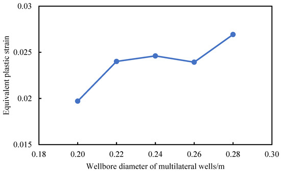 Change trend of the maximum equivalent plastic strain under different wellbore diameters of multilateral wells.