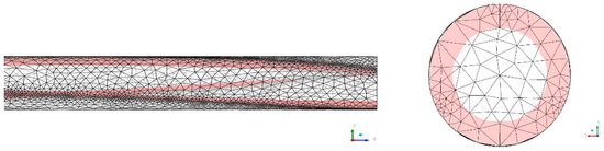 ICEM-CFD software is used to mesh the three-dimensional geometric model. The entire pipe adopts unstructured mesh, and the edge and wall mesh of the twist tape are encrypted. The thickness of the bottom layer is 0.2 mm, and 5 layers are encrypted according to the ratio of 1.1. The line grid is set at the intersection of the diversion channel and the wall, and the maximum size is 0.5 mm. Grid division results are shown in Figure 2.