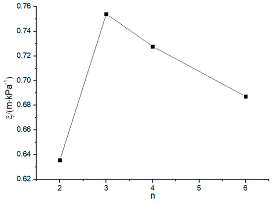 Calculation result curve of pipeline swirling efficiency evaluation parameter of gas–solid two-phase pipeline with different numbers.