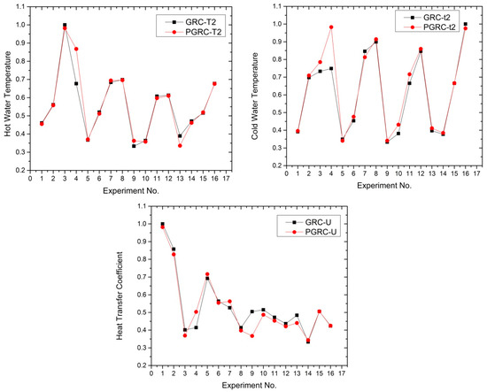An analysis of multiple performance characteristics of a heat exchanger system was conducted using the GRA method. The resulting response was normalized between 0 and 1 (Equation (1)), resulting in a single-objective optimization problem. The normalization equation used was selected for its ability to maximize T