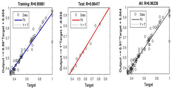 Figure 6 shows the correlation coefficients between all data, training, and testing datasets. Inferring response levels with the ANN model proved to be highly accurate.