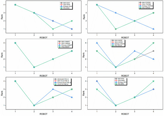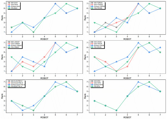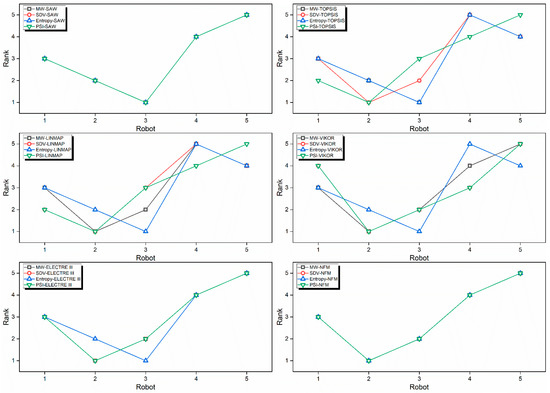 - For the considered case study 3, most MCDM techniques choose the second robot to be the best alternative among the four robots considered. Although a few techniques do suggest the fourth robot to be the best alternative under a certain weight allocation strategy, the number of times that occurs is very few in the study.