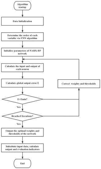 Considering the time delay of the system, both current and previous states of the above variables are supposed to be input variables. For the modeling of time series, the NARX model [26,27] is most commonly used in the industry. It has the characteristics of memory feedback, can increase the dynamic learning ability and can keep the system output delay and feedback to the input.
