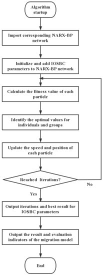 In conclusion, the flow chart showing the use of the IOSBC-PSO method to migrate the NARX-BP model of wind tunnel flow field is shown in Figure 3.