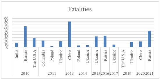 Details of fatalities that occurred in various countries from 2010–2021 [10,11]. (Modified after Zhang et al., 2020 and Szlazak et al., 2020).