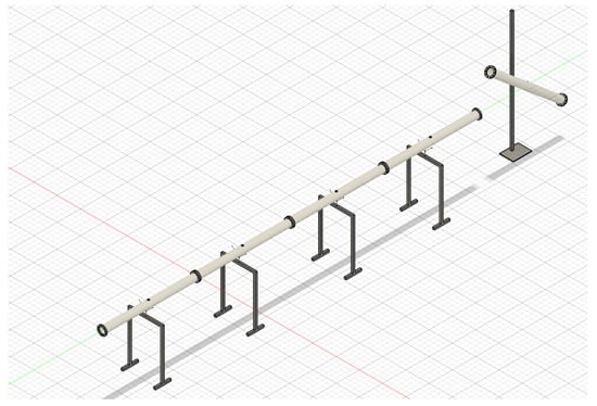 The test setup included key elements such as PVC pipes, a plenum, Morris couplings, a receiver, wireless sensors, and stands. Six wireless sensors were strategically positioned along the pipeline to monitor and record the pressure drop during the experimental trials. The first sensor was located at the bottom of the first pipe.