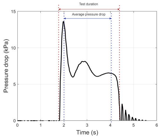However, our study was conducted using a comparatively shorter pipeline, resulting in variations in the steady-state area under different test conditions involving different materials and air mass flow rates. To ensure consistent identification of the steady-state pressure drop, we have chosen to define the start and end points of each test and calculate the average pressure drop within this defined region.