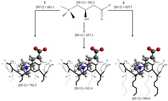 - Ballester, P.; Shivanyuk, A.; Far, A.R.; Rebek, J. A synthetic receptor for choline and carnitine. J. Am. Chem. Soc. 2002, 124, 14014–14016. [Google Scholar] [CrossRef] [PubMed]