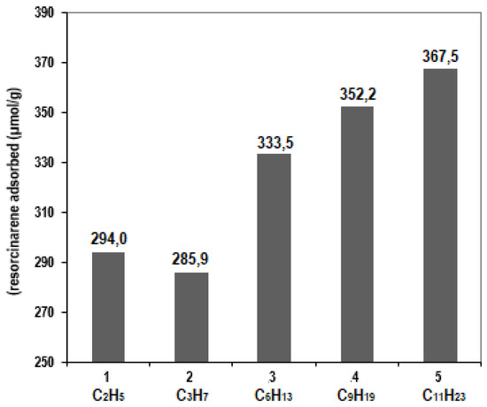 - Castillo-Aguirre, A.A.; Velásquez-Silva, B.A.; Palacio, C.; Baez, F.; Rivera-Monroy, Z.J.; Maldonado, M. Surface modification of poly(GMA-co-EDMA-co-MMA) with resorcarenes. J. Braz. Chem. Soc. 2018, 29, 1965–1972. [Google Scholar] [CrossRef]