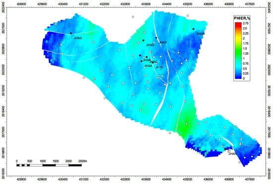 The results show that DPHI is not reasonable at some depth because the wellbore’s washout affects the logs’ resistivity. Table 1 shows the averages of the interpreted PHIER, DPHI, and PERMR in well #JH1A. In well #JH1A, the PHIER, PERMR, and DPHI range from 0.38% to 1.60%, 0.08 mD to 6.34 mD, and 0.25% to 2.56%, respectively.