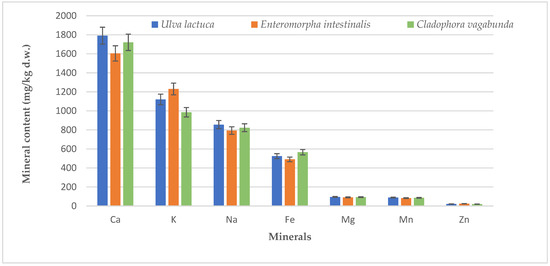 Analysis of the mineral content shows that green algae have a wide range of minerals in their composition. In Figure 5, it is interesting to analyze their distribution in each type of algae sample collected.