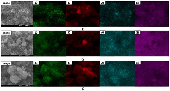 EDS mapping results of (a) Si@Al2O3@C−21(SAC−21), (b) Si@Al2O3@C−11(SAC−11), (c) Si@Al2O3@C−12(SAC−12).