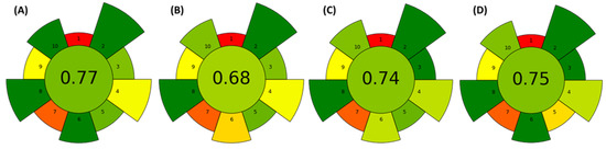 Results of the AGREEPrep analysis considering the extraction technique employed: (A) M20C, (B) M60C, (C) MAE, and (D) SWE. Default weights for each input value were used in the assessment.