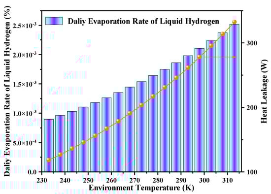 - The daily evaporation rate of LH2 is increased by 1.82 times when the external environment temperature increases from 230K to 310K. Considering the cost, there is an optimal layer number of the MLI. As the number layer of MLI increases, the heat leakage first drops, then gradually slows. The optimal value is 50 layers for a 4000 m3 LH2 spherical tank.