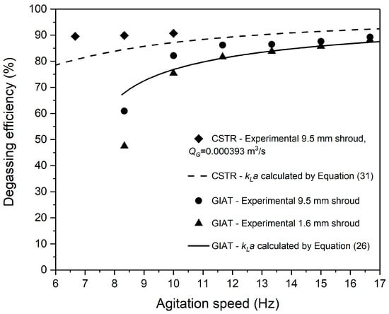 Effects of agitation speed on degassing efficiency in GIAT and CSTR.