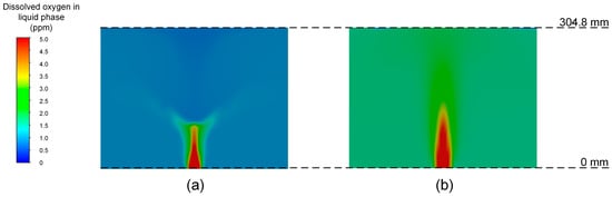 Contours of dissolved oxygen in liquid phase in (a) Case E for CSTR and (b) Case H for BC using CFD-USM (as examples).