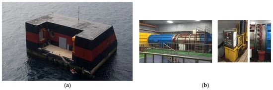 Most wave energy converters are designed to operate at resonance with the incident waves, maximizing the energy extraction based on the natural frequency of the system [6]. Oscillating-water-column (OWC) devices and movable-body-type devices are two major types of wave energy converters designed for resonance. OWC devices, which operate by compressing and expanding air without direct contact with the waves, have shown stability and are closest to commercialization [7,8,9]. Control algorithms play a crucial role in improving the performance and commercial viability of OWC devices. The maximum power point tracking (MPPT) algorithm is important for obtaining the maximum output based on the input wave energy [10,11,12]. Additionally, rated power control, which enables the system to respond to wave variability, is essential [13,14,15,16]. However, the optimal rated power control technology to overcome wave energy variability is yet to be developed [17,18,19,20,21].