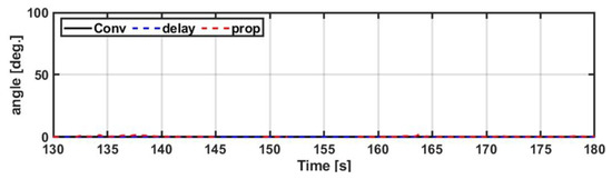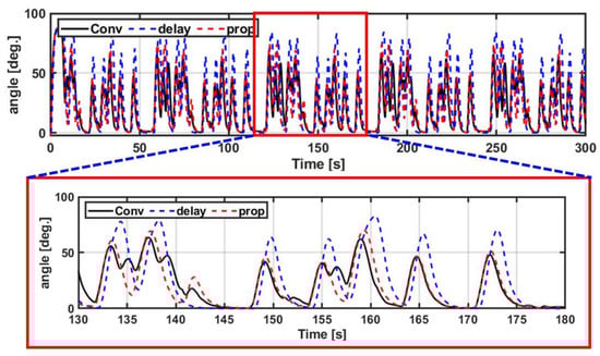 Figure 17 illustrates the valve control angles for each controller under the input conditions presented in Figure 16. In Figure 16, the depicted input condition corresponds to a situation in which the rated controller is not operating. Consequently, for all controllers, the valve control angles exhibit a value of “0”. In other words, when the energy levels are below the rated energy threshold, the outcome remains the same regardless of the controller utilized. The graph provides confirmation that no operation signal is generated based on the error of the deep learning algorithm.