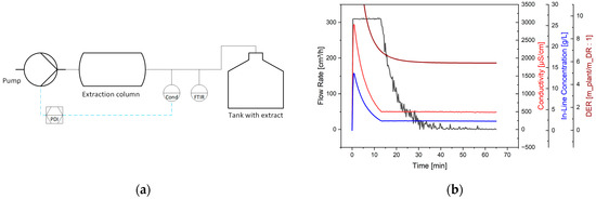 In principle, the highest possible volume flow rate is selected without exceeding the kinetic limitation of the extraction in order to have a high space–time yield. The upper limit of the volume flow rate is determined in previous laboratory experiments. In these experiments, the conductivity value at which the extraction is terminated is also determined. The criterion for the termination value is the near exhaustion of the extraction.