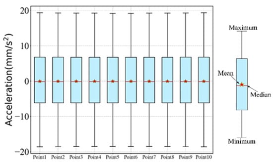 Statistical regularity of acceleration data for each measured point under structural damage.