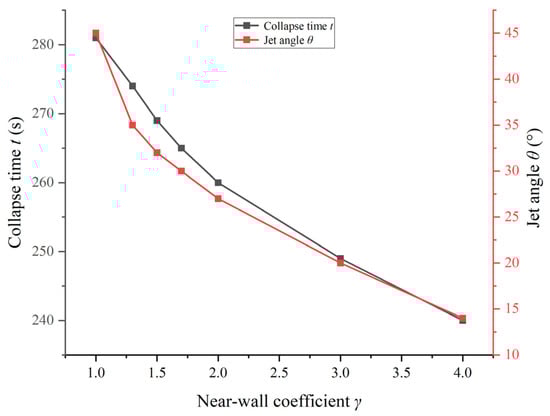Relationship between the collapse time, jet angle, and the near-wall coefficient γ.
