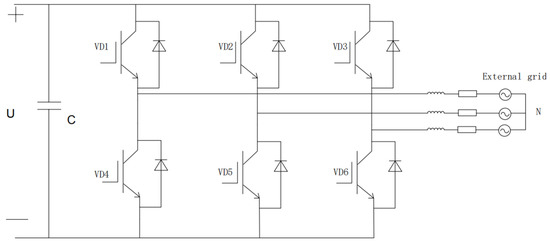 Through the conduction and closing of power electronic switches, PV [32] inverters play a key role in converting the DC power generated by PV systems into the AC power that meets the grid-connected requirements. The DC-AC PV grid-connected inverter topology model, selected as the PV inverter in this paper, is depicted in Figure 5.