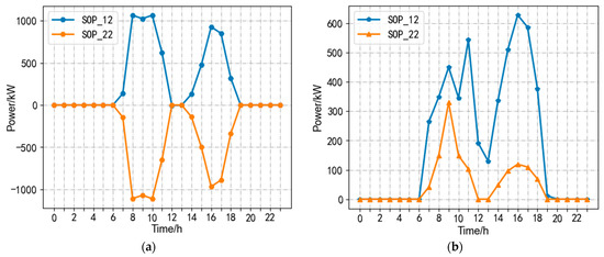 SOP running active and reactive power: (a) SOP active power; (b) SOP reactive power.