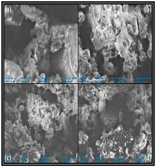 SEM microphotographs: (a–d) show different SEM visualized sculpturing elements of oil cake (OC)-based CuO catalyst.