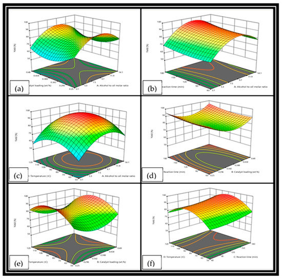 3.5. Transesterification Optimization of Operational Factors Using the Response Surface Methodology (RSM)