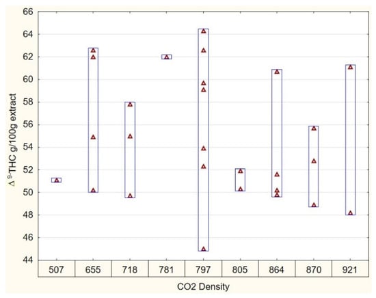 - Perrotin-Brunel, H.; Perez, P.C.; Van Roosmalen, M.J.E.; Van Spronsen, J.; Witkamp, G.J.; Peters, C.J. Solubility of Δ9-tetrahydrocannabinol in supercritical carbon dioxide: Experiments and modeling. J. Supercrit. Fluids 2010, 52, 6–10. [Google Scholar] [CrossRef]
