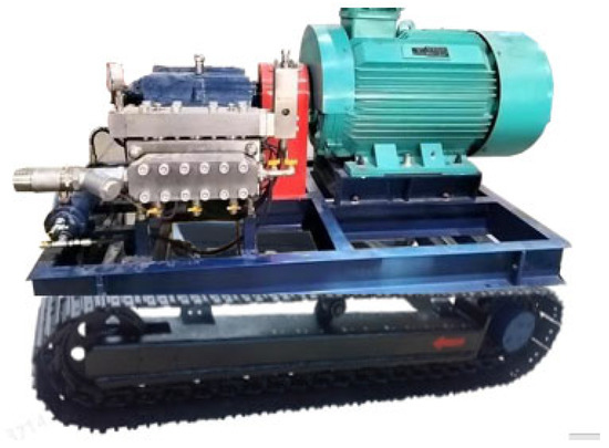 The underground hydraulic fracturing equipment along the coal seam mainly includes fracturing pump set, fracturing packer hole sealing tool string, monitoring and security system, etc. The hydraulic measure power source pump group is shown in Figure 1.