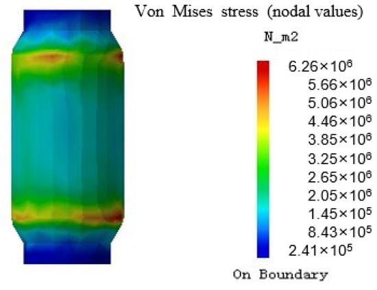 A simulation study was carried out on the length of the packer rubber bucket, and the force on the rubber bucket was calculated when the rubber bucket was 600 mm, 700 mm, 800 mm, and 900 mm. It was found that the maximum force was on the shoulder of the rubber bucket, and the shear resistance of the packer rubber bucket was the strongest when the size of the rubber bucket was 800 mm. See Figure 3, Figure 4, Figure 5 and Figure 6 for the optimal design length.