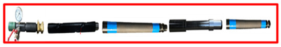 In view of the existing problems of the sealing method, scholars studied the sealing method based on the packer sealing method. Wen et al. carried out the design and test of coalbed methane near-horizontal hole bottom hydraulic packer [15]. Qu et al. used a self-inflatable packer to seal holes in coalbed methane wells in Australia, and verified the reliability of packer sealing holes [16]. Zhang et al. improved the packer support method and carried out field tests in Songzao and Yanjing No.1 Mine. The results show that the encapsulation packer is suitable for the sealing of hydraulic fracture holes in an underground coal mine. The sealing quality is reliable, the effect is good, and the recycling can meet the requirements of hydraulic fracturing [17]. It can be seen that the sealing method of the packer can effectively solve the sealing problem in the anti-reflection technology of coal seam.