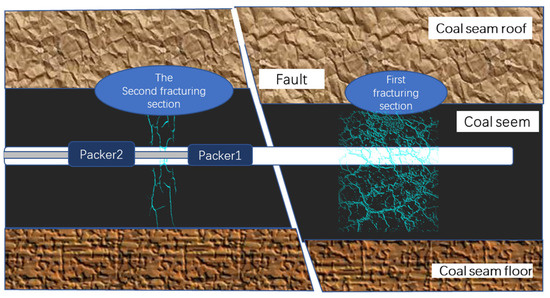 During the fault, the thickness of the coal seam on the weak surface of coal rock changes greatly, the fracture direction is uncontrollable in areas such as igneous rock intrusion, and the fracturing fluid leaks easily, the double packer sealing process can realize the advantages of avoiding structure and precise fracturing.