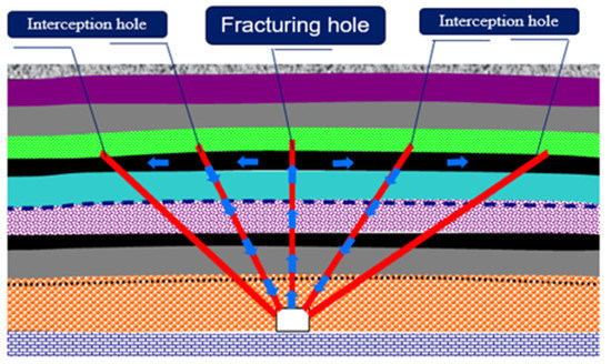 Schematic diagram of fracturing flushing permeability enhancement of fracturing holes and intercepting holes.