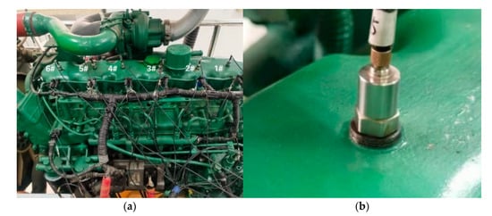 Considering the operability of diesel engine condition information acquisition, the theoretical basis of signal analysis, and the accuracy of fault diagnosis, vibration signals have more advantages compared with other data acquisition techniques. The acquisition of signals reflecting the operating condition of the diesel engine through vibration sensors is simple, diagnostically accurate, efficient, and easy to apply in engineering. The subsequent content is based on vibration signals.