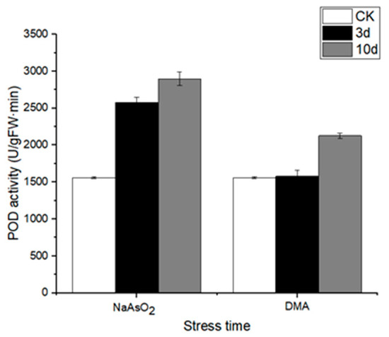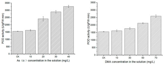 3.1. Effects of Arsenic Stress on POD Activity in Honeysuckle Leaves